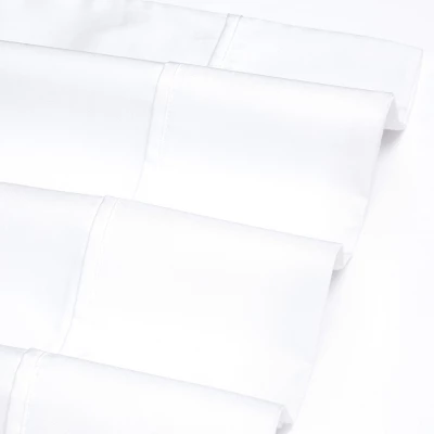 Indulge in the everyday soft luxury of 400 Sateen Sheet Set. Woven from 100% long-staple cotton with a gorgeous sateen weave, our sheet set is soft, smooth, and comfortable for a luxurious sleep each night. The head/foot side indicator on the fitted bottom sheet helps to make the bed quickly. Naturally cool, comfortable, and breathable, our 400 sateen sheet set keeps you cool in summers and warm in winters. The cotton sheets feel soft against the skin without being slick or flimsy, unlike microfiber sheets. Our 100% cotton sheets are sustainable, biodegradable, and more durable than microfiber. The sheets are free from any harmful chemicals & do not cause plastic pollution, unlike microfiber. Our sheets are certified as STANDARD 100 by OEKO-TEX. Washing our sheet set is easy. Toss it in the machine and tumble dry on low mode. Our sheets don’t shrink, wrinkle, or fade. Even after multiple washes, they are soft and new as ever. Lay yourself down in the comfort of our sheet set that will ensure a luxurious sleep each night.