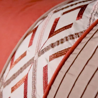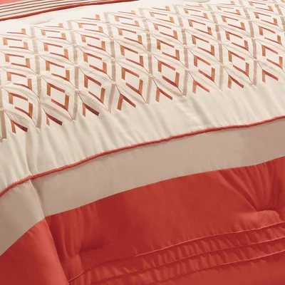 This bright and vibrant 8 Piece Janna multi piece comforter set makes it easy to update your bedroom. The comforter not only has amazing embroidery detail, but also has both piecing and pleating techniques. This bedding set includes one comforter, one bedskirt (with an 18 inch drop), two standard shams, two euro shams and two coordinating decorative pillows. This set is machine washable for easy care and maintenance.