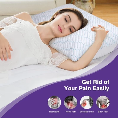 Cooling Rayon: Experience the ultimate in comfort with our cooling pillow covers, crafted with advanced Japanese Cool-to-Touch Technology. These innovative fibers effectively absorb body heat and promote enhanced air circulation, ensuring a cool and refreshing sleep experience throughout the night.Customizable Comfort: Enjoy personalized comfort with our thoughtfully designed zipper feature, allowing you to easily add or remove foam fillings. This adjustable design lets you tailor the pillow’s height and firmness to suit your individual preferences, ensuring you find the perfect level of support for a restful night’s sleep.Spinal Alignment: Our pillow is engineered to align your head, neck, and spine, thanks to the firm memory foam that contours to your neck while gently guiding your spine into a natural position. This thoughtful design helps reduce discomfort and promotes better posture during sleep, allowing you to wake up feeling rejuvenated.Supportive and Breathable: The unique blend of open-cell memory foam and poly fill offers a supportive yet breathable sleeping surface. This combination is softer and more breathable than traditional solid foam, providing a comfortable and cool sleeping environment. Experience the difference of a pillow that adapts to your body while promoting airflow for a more restful sleep.