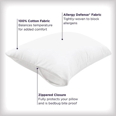 From the #1 selling allergy bedding brand AllerEase, the Ultimate Cotton Zippered Pillow Protector delivers premium comfort and protection for a truly clean bed. It features soft 100% cotton fabric with temperature-balancing properties to wick moisture when you’re hot and insulate when you’re cold. Our expertly designed Allergy Defense Fabric® even prevents unhealthy household allergens — like dust mites, pollen, and pet dander — from collecting in your pillow. Antimicrobial product protection keeps your protector fresh by inhibiting the growth of odor-causing bacteria, and it can be washed in hot water to remove dirt, bacteria, and surface allergens. Ultimate Cotton will keep your pillow protected for a healthy night’s sleep and is backed by the AllerEase Lifetime Warranty.