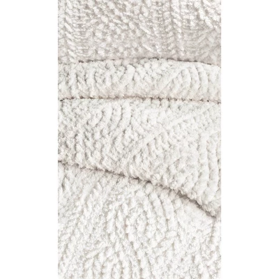 Cable knit cozy! The G.H Bass Cable Knit Pinsonic Sherpa is ideal for warming up by the fire. The Pinsonic is a technique that provides a dimensional texture. When mixed with a cable knit design and ivory Sherpa construction, the result is a textural, cozy wonderland that easily matches any bedding ensemble. Available in twin, full/queen and king. Twin comforter set includes: one comforter 63β x 86β, one sham 20β x 26β. Full/Queen comforter set includes: one comforter 88β x 88β, two shams 20β x 26β. King comforter set includes: one comforter: 104β x 88β, two shams 20β x 36β.