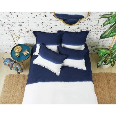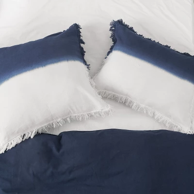 With a dip dye technique reminiscent of the free-spirited style of tie-dye, the Aster collection brings bedroom style to the next level. This 100% cotton indigo and white pillow coordinates perfectly with distressed accents, tassels, and frayed edges for a chic and chill look.