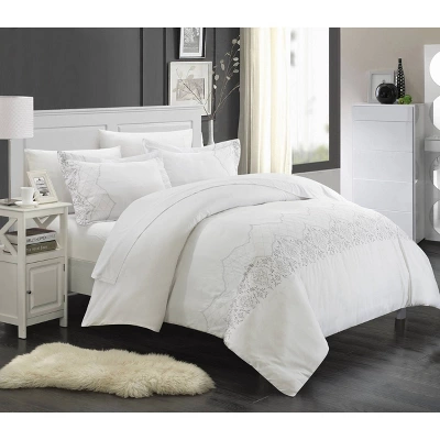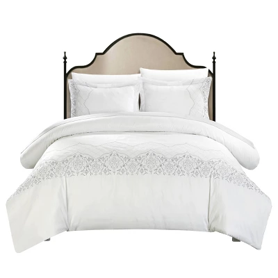 Say goodbye to tossing and turning and enjoy a luxurious night’s sleep with the Sandy duvet cover from Chic Home. This premier duvet cover from our bridal collection features intricate embroidery details that create a classic look. Every Sandy duvet cover is made with luxuriously soft brushed microfiber fabric for a great night sleep with less tossing and turning. Decorate your bedding with the included pillow shams and embellished decorative pillow or mix and match with other pieces for a unique look.