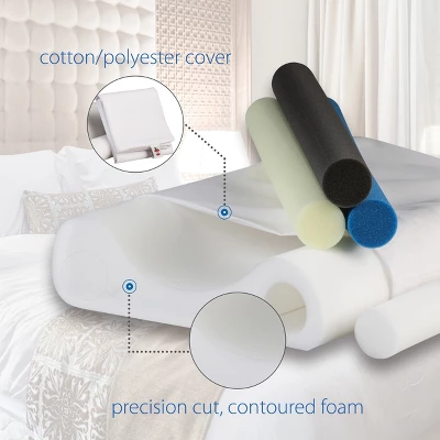 The Double Core Pillow is constructed from precision cut, contoured foam that provides even support to the head and neck, and allows the shoulder muscles to relax. The core options include: gentle, medium, firm, and extra-firm
