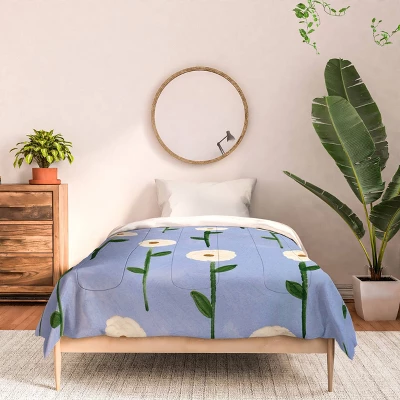 Deny Designs Reves Et Histoires Cute Little Flowers On Blue Comforter Set Blue