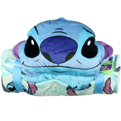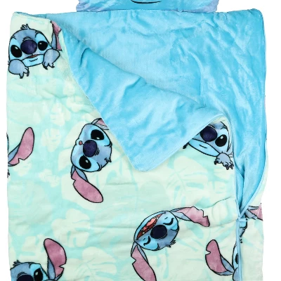 This Lilo and Stitch zip-up slumber bag combines comfort, convenience, and fun character style in one convertible design. The soft silk-touch fleece feels smooth against the skin, while the playful Stitch head pillow—with 3D ears and tufted hair—adds a delightful visual and tactile element. Whether used zipped up as a sleep sack or unzipped as a cozy throw, it offers versatility in one smart piece.Sized for young fans of Disney’s Stitch, this slumber blanket is easy to carry thanks to the roll-up straps and compact build. From daytime lounging to overnight naps or travel, this fleece throw bag and attached character pillow provide a practical and cheerful option for staying cozy anywhere. It’s easy to clean, fun to use, and a character favorite designed for everyday comfort.