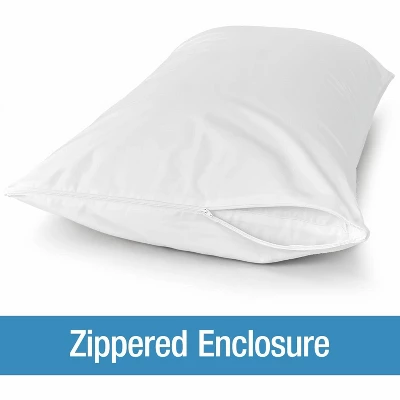 - Set of 2 standard pillow protectors sized 20×26 with secure zipper closure