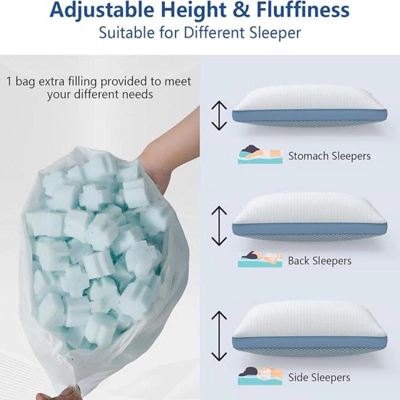 - 【Adjustable Height】: Unlike traditional pillows, fillings of these shredded memory foam pillows could be added or removed to suit your size, shape, or sleep position. It can provide maximum comfort in any sleeping position and is perfect for sleeping on the side, stomach, and back.