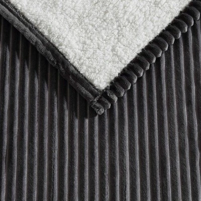 - Solid Dark Grey Ribbed Plush Reversing To Solid White Popcorn Fleece