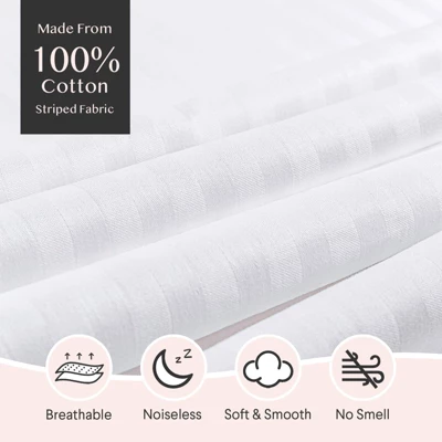 100% Pure Cotton: Elevate your comfort with our 600-thread-count pure cotton pillow protectors, crafted for superior softness and breathability, ensuring a refreshing and clean sleeping environment. The ultra-soft fabric, featuring enhanced airflow technology, reduces heat retention by 40% compared to standard cotton, making it ideal for night sweats or warm climates. Additionally, the tightly woven material acts as a natural barrier against dust mites and allergens, perfect for allergy-sensitive sleepers.Durable Invisible Zipper Pillow Covers: Designed with a sturdy hidden zipper for a seamless look, our pillow covers provide a secure fit while maintaining a smooth and elegant appearance. The heavy-duty, rust-proof zipper, tested for over 10,000 uses, not only ensures security but also prevents dust mites and allergens from entering, offering an additional layer of protection for allergy-sensitive households. The noise-free operation ensures uninterrupted, peaceful sleep.OEKO-TEX Certified for Safety: Rest easy with our pillows, featuring OEKO-TEX certification (NO: 23.HCN.66795), guaranteeing they are safe and skin-friendly for the entire family, including young children. This certification ensures the fabric is free from harmful chemicals, making it suitable for those with allergies and sensitive skin, promoting a healthier sleep environment.Multi-Size Pillow Protector Options: Available in diverse sizes including standard, queen, king, toddler, and body, our pillow covers cater to all pillow types, making them suitable for any bedroom setting. The adaptability and protection against allergens make them an excellent choice for children’s rooms or guest rooms, providing a comfortable sleeping space for all.