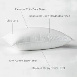 - Filled with 80% white duck feathers and 20% white duck down, and finished with a 100% cotton sateen shell