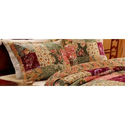 Wildflowers combine with warm stripes in the Sedona quilted sham A whole cloth quilted sham crafted in the colors of the great Southwest, Sedona features scalloped edges Reverses to a coordinating colorful stripe for two looks in one! Cotton face, back and fill. One Standard Sham dimensions: 20×26″. Decorative cloth ties on reverse, Overlapping envelope style back, Cotton face, back and fill Patchwork Contruction, Fabric bound edges.