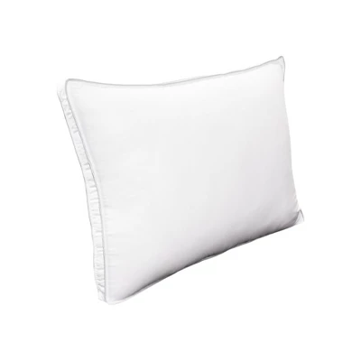 Set of two microfiber down alternative medium hypoallergenic king size bed pillows offer a perfect blend of comfort and support for back and side sleepers. These pillows feature a medium comfort level, filled with plush polyester polyfill, they provide just the right amount of cushioning for the ultimate rest. Comes complete with a gusseted gray piped edge that enhances the overall structure and durability of the pillow, promoting better neck alignment. Enjoy this comfortable and hypoallergenic pair of pillows for a great night’s sleep. 39-inch h x 24-inch w x 11-inch d.
