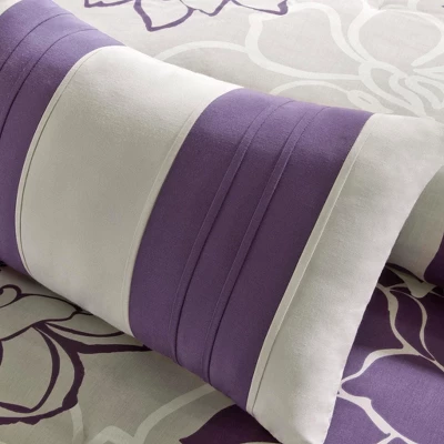 This Madison Park comforter set transforms your bedroom into a beautiful and graceful space. A gorgeous floral printed floral motif is displayed on the OEKO-TEX certified cotton sateen comforter and shams (1 for Twin/Twin XL Sizes) for a chic transitional look. Three decorative pillows with embroidered details and fabric manipulation add texture and dimension to the bed.