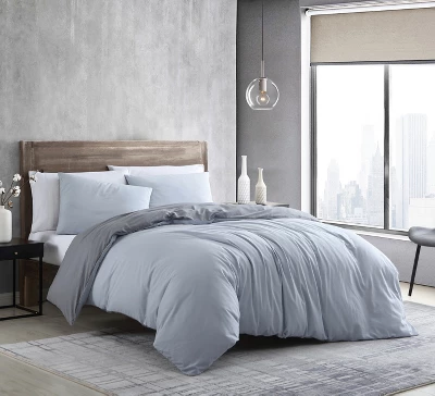 Item Developed Using Cotton Materials Modern- Contemporary Style 144 Thread Count- 100% Plain Weave Cotton Duvet Cover Set Design Features: 51% Lyocell/49% Cotton Made thoughtfully and sustainability, the Kenneth Cole miro collection is made from a fiber that comes from tree pulp. Blended with premium cotton, it has a super slick and soft hand and is cool to the touch. Sleep on the cool side of the pillow, always.