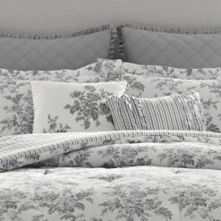 - The Lindy Comforter Bonus Set combines a beautiful floral design and soothing colors of ivory, white and green to enhance the serenity of your space The Reverse Features A Petite Horizontal Striping In Beige