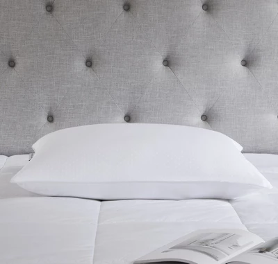 Drift into an indulgent sleep with the Stearns & Foster® PrimaCool Pillow. At a plush, medium support level, this pillow is the ideal density for most sleepers. The pillow features hypoallergenic PrimaCool, an innovative fabric blend of Tencel® and cotton that helps to keep you cool all night. The silky fabric is treated with both an antimicrobial finish as well as Scotchguard stain release for easier care.400 Thread Count CottonMedium Density – Perfect for Back and Side SleepersMoisture Wicking and Cooling Technology Used to Help Regulate Body Temperature60% Tencel/40% Cotton Woven Dobby Stripe PatternAntimicrobial Fabric FinishScotchguard Stain Release Fabric FinishEnviroLoft® Polyester Filling – Premium Down AlternativeSold Individually – We Suggest Two Per SleeperEasy care machine wash & dryMade in The USA of Imported MaterialsSize & Weights:Jumbo 20 x 28 Inches, 23 oz. FillingKing 20 x 36 Inches, 30 oz. Filling