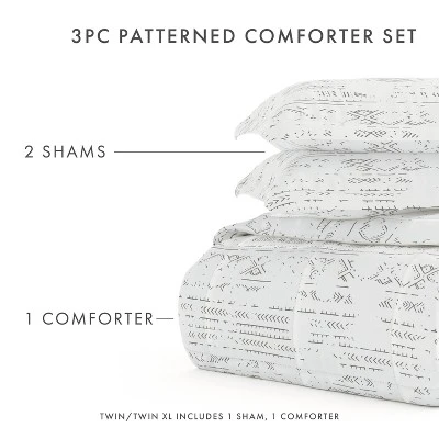 - 3 piece set: 1 Comforter and 2 Shams (Twin/TwinXL option is a 2 piece set: 1 Comforter and 1 Sham)