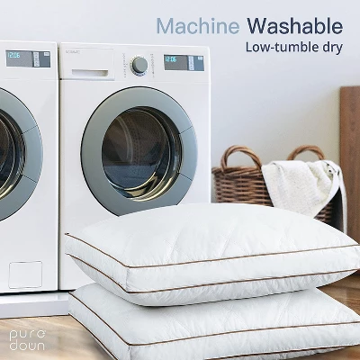 SIZE & FILLING – Standard: 20*26” / Queen: 20*30” / King: 20*36.With its filling of 95% Grey Goose Feathers and 5% Goose Down, our pillow’s high-quality materials ensure it provides the best sleeping experience.MEDIUM FIRM DENSITY – The 1.5” gusset along the side provides better neck support and aid in spine alignment. Medium firm support accommodate multiple sleep positions, is suitable for Back Sleeper, Side Sleeper and Combination Sleeper.Gusset Design Create more room for the inner down and feather to achieve a better loft.DURABLE FABRIC – Made of 100% cotton, the texture of its soft and breathable cover is skin friendly and durable. High-density down-proof lining fabric can effectively prevent inner down and feather from leaking out.ETHICALLY-SOURCED DOWN – All of our pillows follow the Responsible Down Standard (RDS). The stuffing of down and feather is carefully selected from premium and reliable materials and is processed to be odorless to provide you with a blissful night’s sleeping experience. RDS, Oeko-Tex, DownPass, BSCI, OXIPOWER, TWICE AS NICE, and it’s Eco-friendly.WASH INSTRUCTION – Machine wash cold separately gentle cycle, tumble dry low until thoroughly dry. Fluff your pillows every morning could be helpful to keep it in good condition. Pillowcases are recommended. Machine Washable, Low-tumble drySkin Friendly, Breathable, Medium Firm Support, Degradable Natural Feather, Durable FabricPuredown, Sleep on It