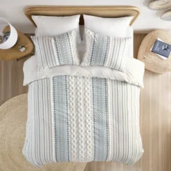 3pc Mila Cotton Duvet Cover Set With Chenille Tufting – Ink+Ivy