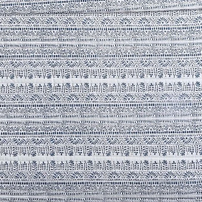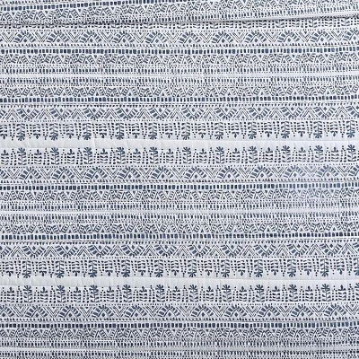 - Coastal inspired block printed pattern in blue hues arranged in stripes