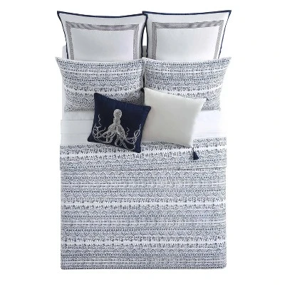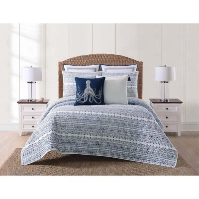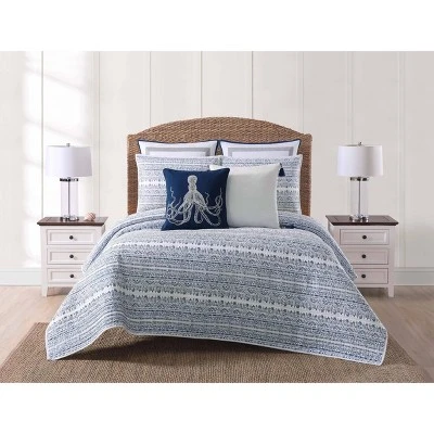 The Reef Blue Quilt Set by Oceanfront Resort adds a modern touch to your bedroom thanks to a geometric block print in a stripe motif. From a master bedroom to a guest suite, this quilt set adds a sense of tranquility thanks to its colors of white and blue. The set includes matching pillow shams and machine-washable care.