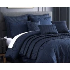 - 9 or 10 pc look includes comforter, bedskirt, two shams, two euro shams (three in king size) and three decorative pillows
