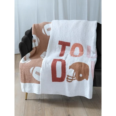 Keep yourself cozy while you show off your sporty style with Shiraleah’s “Touchdown” Throw. This luxuriously soft blanket features the word “Touchdown” in multicolored letters with an adorable football helmet design. Chic and comfortable, this throw can help decorate your home gameday watch party or keep you warm as you cheer on your team in the stands. Pair with other decor and apparel items from Shiraleah’s Gameday Collection to complete your look!