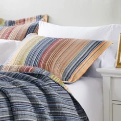 - Add a nautical style to your living room or bedroom with the Captain Quarters Euro Sham. This maritime euro sham features a high quality cotton fabric on a navy background with nautical designs of lighthouses, anchors, and fish in white.