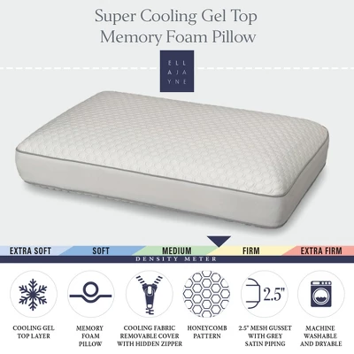 The Ella Jayne Performance Collection matches our classic style with attributes needed to help you fully refresh each day. Our Ella Jayne Super Cooling Gel Top Memory Foam Pillow will keep you cool and dry, while also providing the personalized feel only memory foam can provide. This memory foam pillow provides the perfect level of back and posture support for everyone, no matter your sleep style. Features a layer of cooling gel which draws heat away from your body and is encased in a washable cooling knit cover.