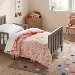 This Crinkle Bow Gingham Floral Comforter from Pillowfort™ is the perfect pick to infuse welcoming vibes and warmth into your toddler’s bedroom. Made from a recycled polyester-spandex blend with 100% recycled polyester backing and soft polyester filling, this set provides year-round cozy warmth. It showcases a vibrant floral-pattern top with red-checkered ruffle trimming and a crinkly white reverse adorned with red checkered patch stripes and bow ends. Plus, the machine-washable construction allows for hassle-free cleaning.