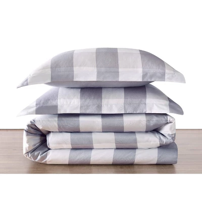 This large buffalo check print features a white background and gray intersecting pattern on the face of the duvet. The reverse is a solid color gray. The duvet and shams feature a brushed 100% microfiber polyester Truly Soft fabric with special finishes to make this the ultimate in softness. Each duvet set comes with a duvet cover (insert is not included and needs to be purchased separately. Shams require inserts that must be purchased separately. This item can be machine washed but please be sure to use properly sized machinery to care for the item. Duvet face and back are made from 100% microfiber polyester fabric. These items are all machine washable; however, care should be taken to use appropriate sized equipment.