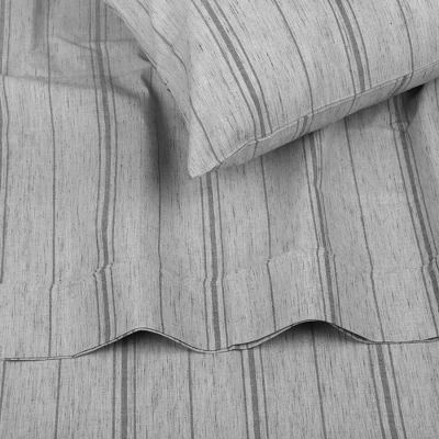 Dress up your bed with these subtle woven bedsheets from the Trident Macaron Bedsheet range. These Bedsheets are made of dyed and undyed BCI cotton and polyester fibers that are woven together, resulting in a unique eye-catching pattern. The cotton for Macaron sheet sets are sourced from a non-profit, multi-stakeholder governance group that promotes better standards in cotton farming and practices across 21 countries. Also knows as heathered fabric, these sheets have a soft hand and a variety of modern stripe designs to choose from. These uniquely blended woven sheets set also provide excellent durability and smoothness.