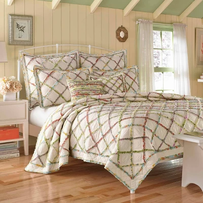 Laura Ashley Ruffled Garden sham features bands of appliquéd ruffles that form a geometric pattern layered on an ivory ground. This stunning sham features diamond quilt stitching that coordinates back to the Ruffle Garden Quilt. Standard sham measures: (21″l x 27″w). Sham features an envelope closure. Machine washable for easy care.