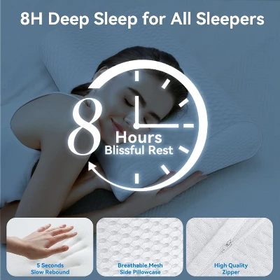 - Promotes 8 Hours of Deep Sleep: Designed to help you achieve 8 hours of restorative deep sleep, this pillow is perfect for those seeking improved sleep quality and waking up refreshed.